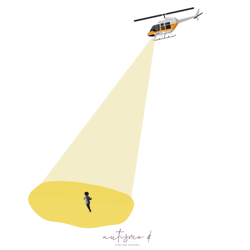 Belangrijk is dat de helikopter zich afstemt op het kind daar beneden in het zoeklicht.